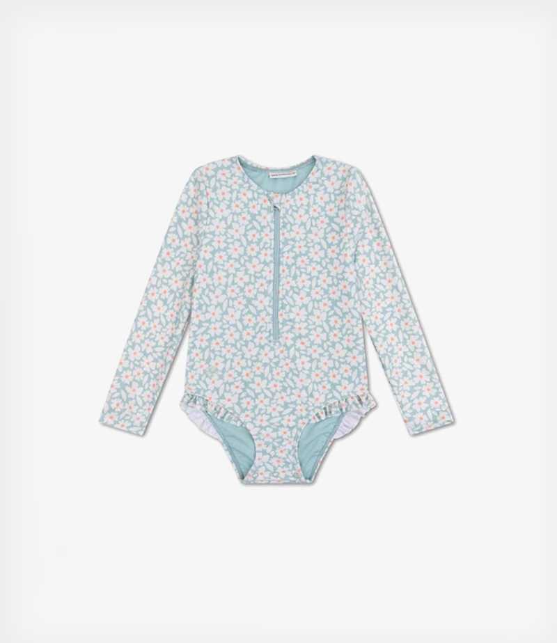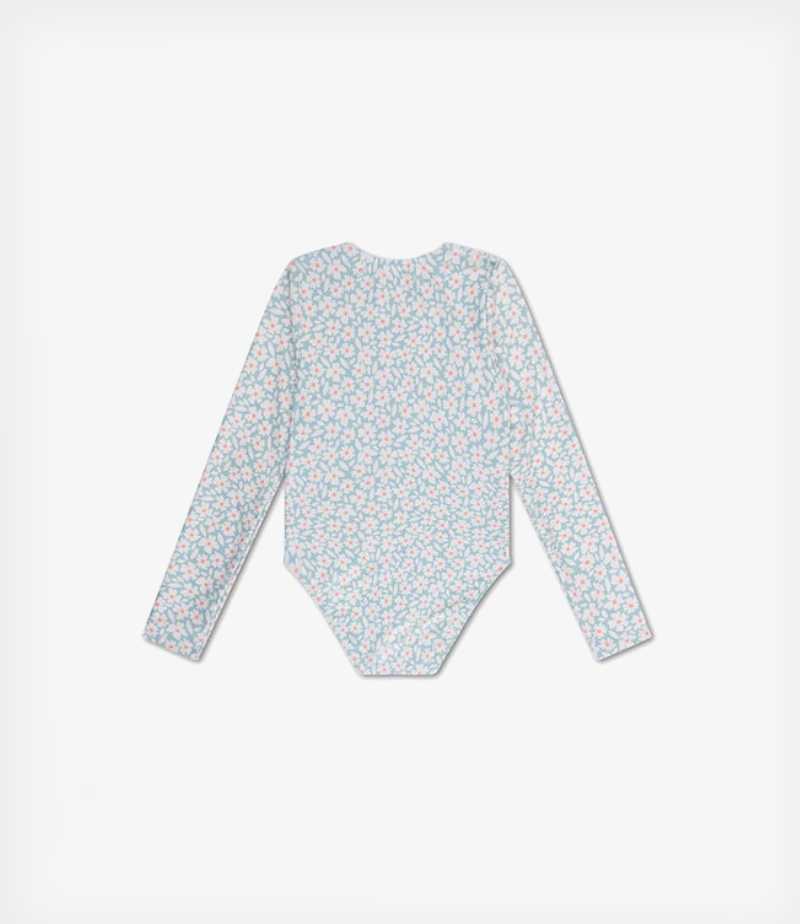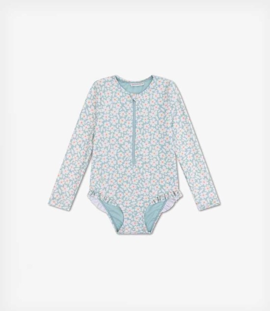 Swim Essentials Ολόσωμο μαγιό με προστασία UPF50+ και μακριά μανίκια – Green Flowers