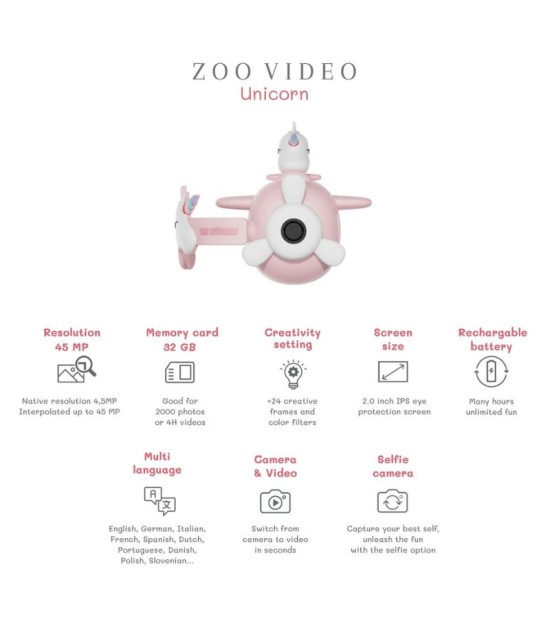 Με τέλειο μέγεθος για να χωράει σε μικρά χέρια, η κάμερά διαθέτει μαλακή λαβή από σιλικόνη για μια εμπειρία αφής. Tο Unicorn φέρνει ατελείωτη δημιουργικότητα στα χέρια τους.