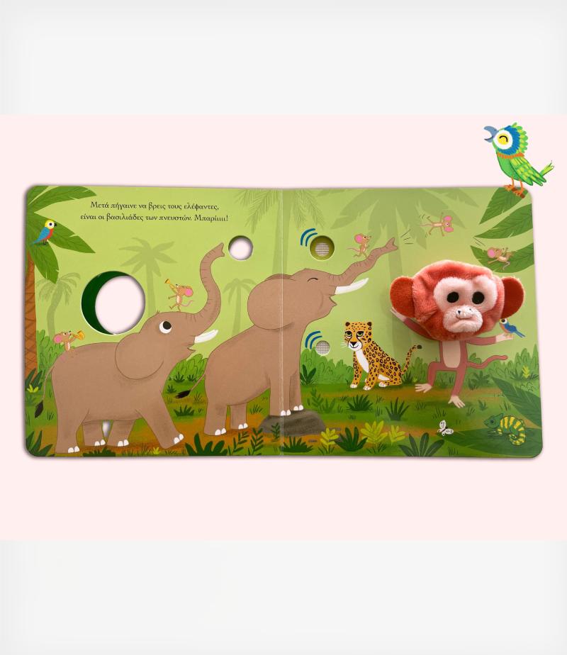 Ζωντάνεψε το μαϊμουδάκι-δαχτυλοκουκλάκι, άκου τη φωνή του και ανακάλυψε τους ήχους της ζούγκλας με συνοδεία μουσικής!