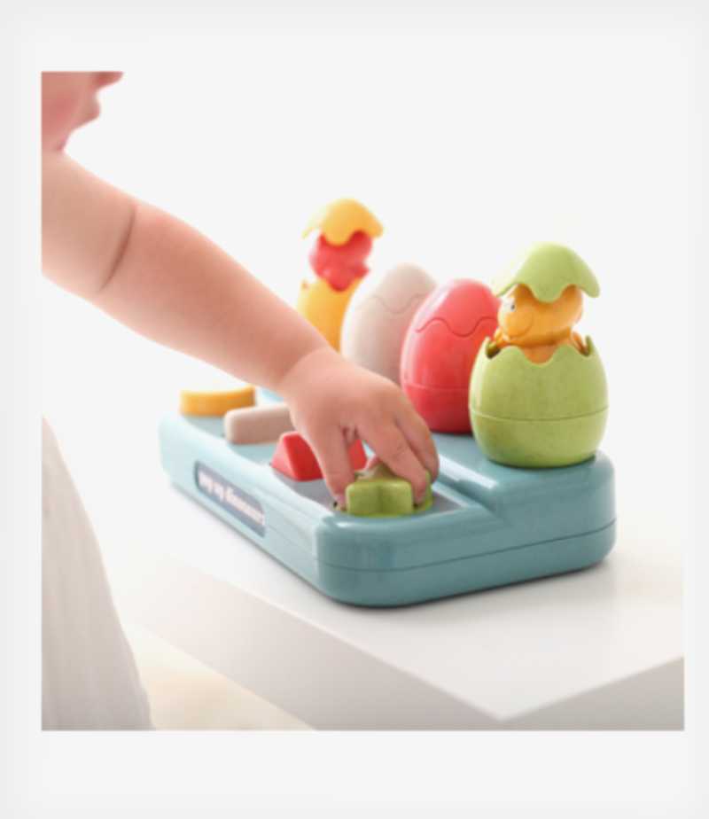Το παιδί κουνά με διαφορετικούς τρόπους τα σχήματα και οι δεινόσαυροι βγαίνουν από το αυγό τους.