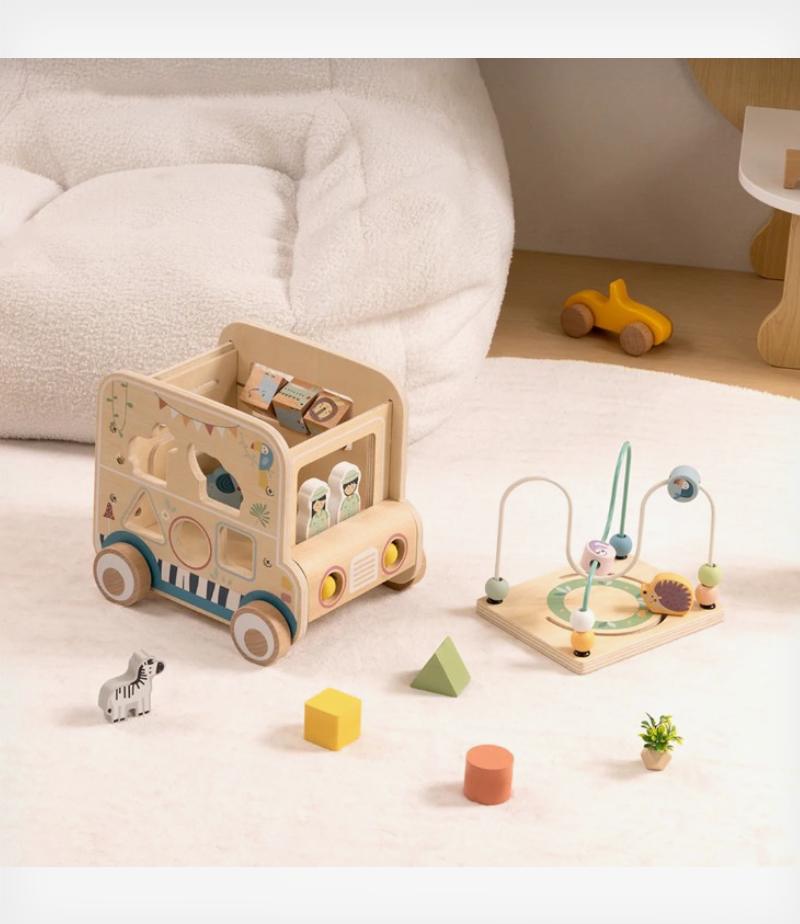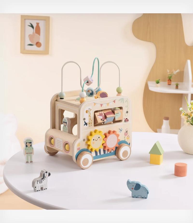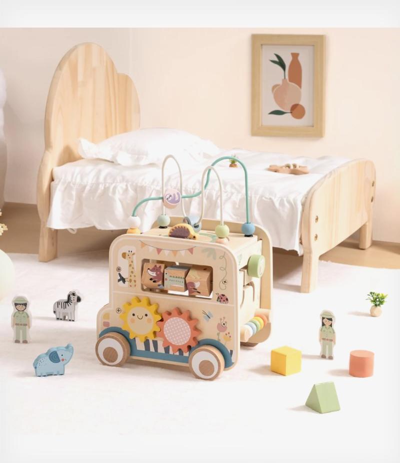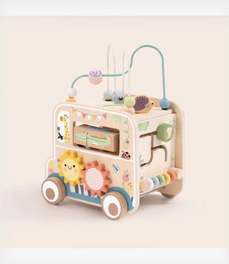 Πολυλειτουργικό ξύλινο αυτοκινητάκι δραστηριοτήτων της Tooky Toy.