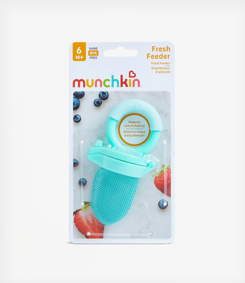 Χάρη στην πιπίλα Fresh Food Feeder της Munchkin, το μωρό σας μπορεί να απολαμβάνει υπέροχα σνακ, χωρίς καμία ανησυχία. Με απλή σχεδίαση με δίχτυ, αυτή η εύχρηστη πιπίλα βοηθά τα μωρά χωρίς δόντια να μασούν με ασφάλεια τα τρόφιμα. Τοποθετήστε απλώς κομματάκια φρούτων, λαχανικών ή ακόμη και κρέατος στη σήτα και κουμπώστε την στην πιπίλα. Το μωρό μπορεί να μασήσει, να πιπιλίσει και να γευτεί τη φρεσκάδα των τροφίμων σε μικρά, εύπεπτα κομμάτια, μειώνοντας τον κίνδυνο πνιγμού. Μπορεί να χρησιμοποιηθεί εναλλακτικά προς τα παιχνίδια οδοντοφυΐας. Επίσης, η πιπίλα Fresh Food Feeder διαθέτει μια χρωματιστή, εργονομική λαβή για το μωρό σας, βοηθώντας το να κάνει το πρώτο βήμα, ώστε να μάθει να τρώει μόνο του.