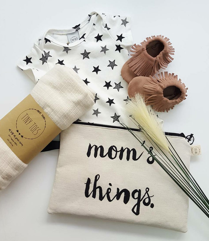 Υπέροχο τσαντάκι νεσεσέρ Tiny Toes από 100% βαμβακερό canvas και κέντημα για τις μανούλες με στυλ και κομψότητα!