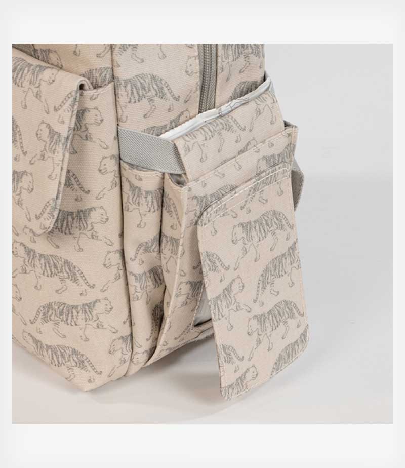 Η Walking Mum μας φέρνει ένα σακίδιο πλάτης από την σειρά Sabana σε μπεζ χρώμα με στάμπα απο τίγρεις. Ιδανική για να μεταφέρετε τα πράγματά σας και του μωρού σας, με υπέροχο στυλ, σε όλες τις βόλτες σας.