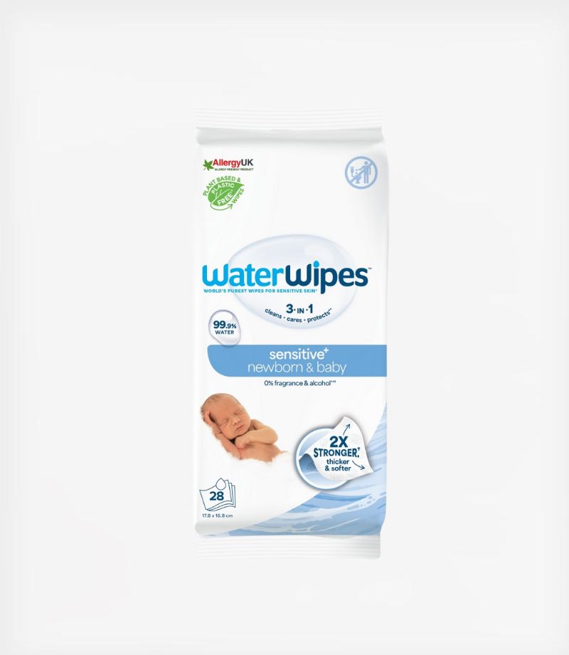 Τα WaterWipes σχεδιασμένα για να καθαρίζουν απαλά και να προστατεύουν το ευαίσθητο, βρεφικό δέρμα, τα Sensitive+ Newborn & Baby Wipes περιέχουν μόλις δύο συστατικά – 99,9% νερό και μια σταγόνα εκχύλισμα grapefruit.