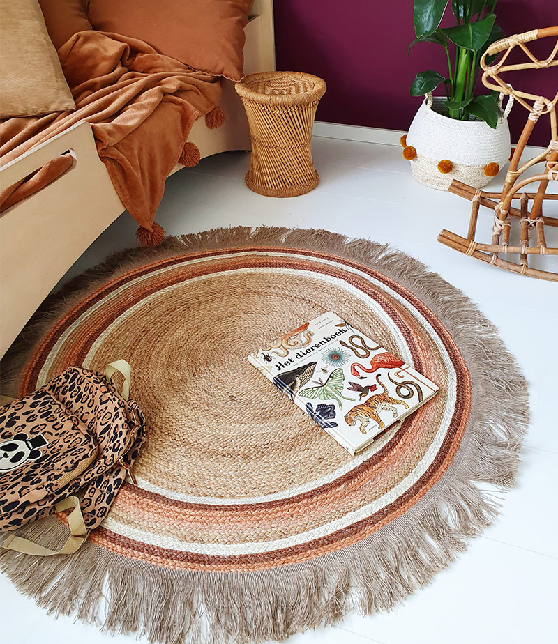 Το χαλί Jute Tess Rust είναι ένα υπέροχο μαλακό, στρογγυλό και μεγάλο χαλί, ιδανικό για μικρά ποδαράκια και για παιχνίδι.