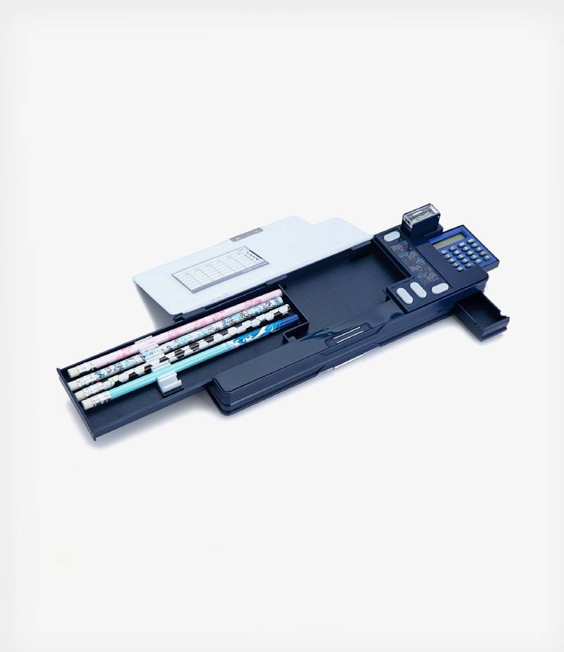Η ρετρό κασετίνα αποτελεί ένα μυστήριο προς εξερεύνηση…  Τα παιδιά πατούν τα κουμπιά και ανακαλύπτουν το κομπιουτεράκι, μυστικές θήκες, μία ξύστρα και πολλά άλλα.