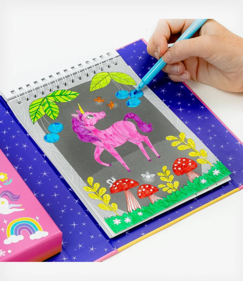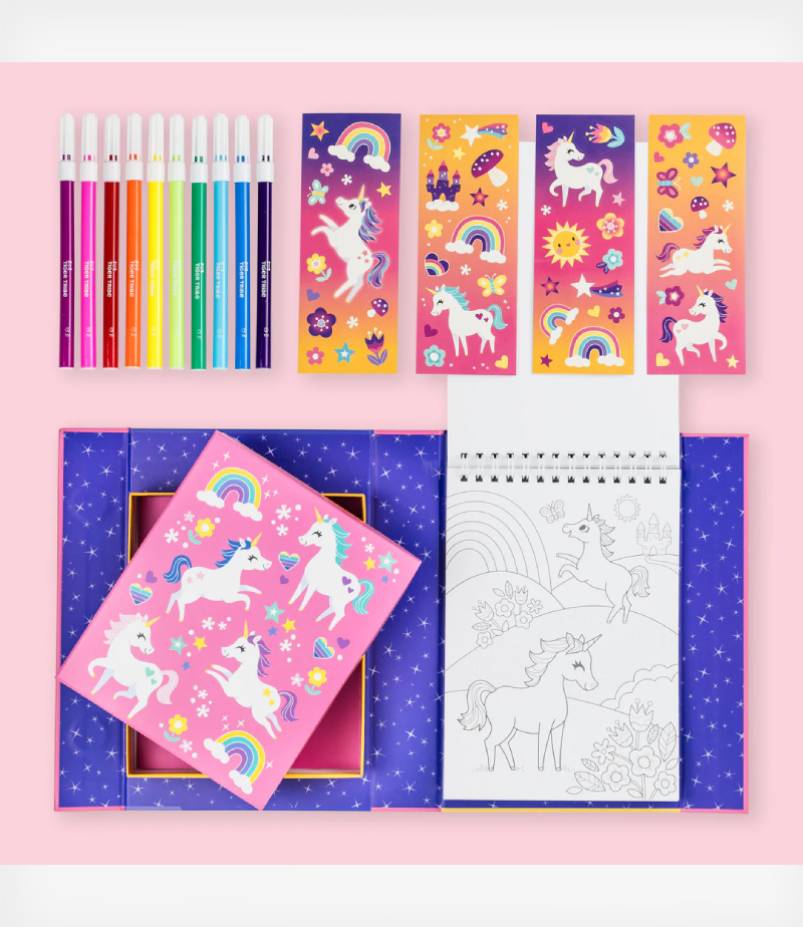 Χρωματίστε με 10 μαρκαδόρους και διακοσμήστε με αυτοκόλλητα τις εικόνες με τους μαγικούς μονόκερους!