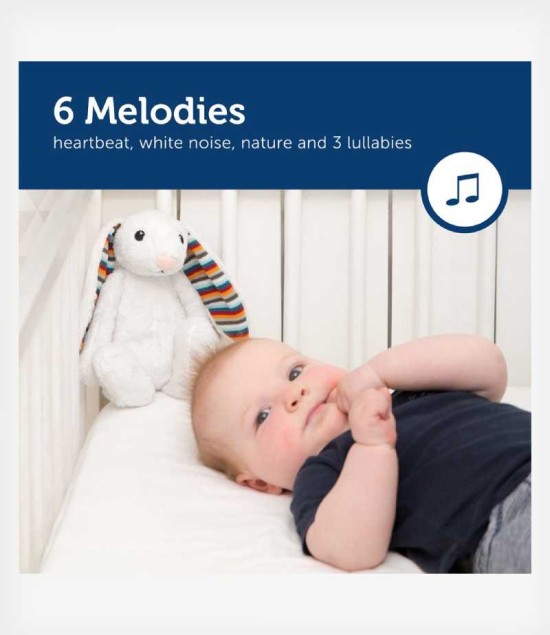 Διαθέτει συσκευή ύπνου που μιμείται την καρδιακή παλμικότητα της μητέρας, τους οικείους λευκούς ήχους που ακούγονται στο μωρό από τη μήτρα για 9 μήνες, καθώς και χαλαρωτικές μελωδίες. Οι καρδιακοί παλμοί και οι λευκοί ήχοι απομονώνουν τα μωρά από εξωτερικούς θορύβους, δημιουργώντας ένα ασφαλές, μητρικό ηχητικό περιβάλλον. Έχει ενσωματωμένο αισθητήρα ήχου που επαναλαμβάνει το επιλεγμένο πρόγραμμα για 10 λεπτά όταν το μωρό ξυπνάει, κάνει θόρυβο ή κλαίει. Είναι πολύτιμο για το νανούρισμα και βοηθάει τις μητέρες να κοιμούνται και αυτές, λίγο περισσότερο.